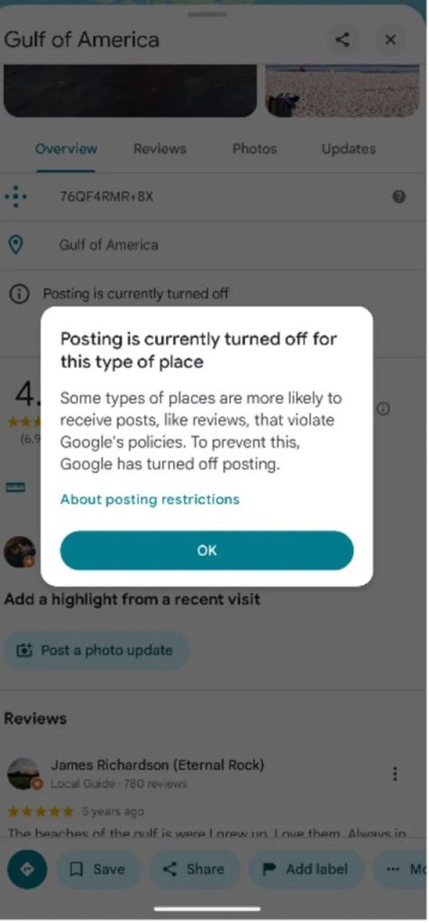 Additionally, Google Maps has removed many negative reviews related to the name change, with only reviews from about a month ago still visible.