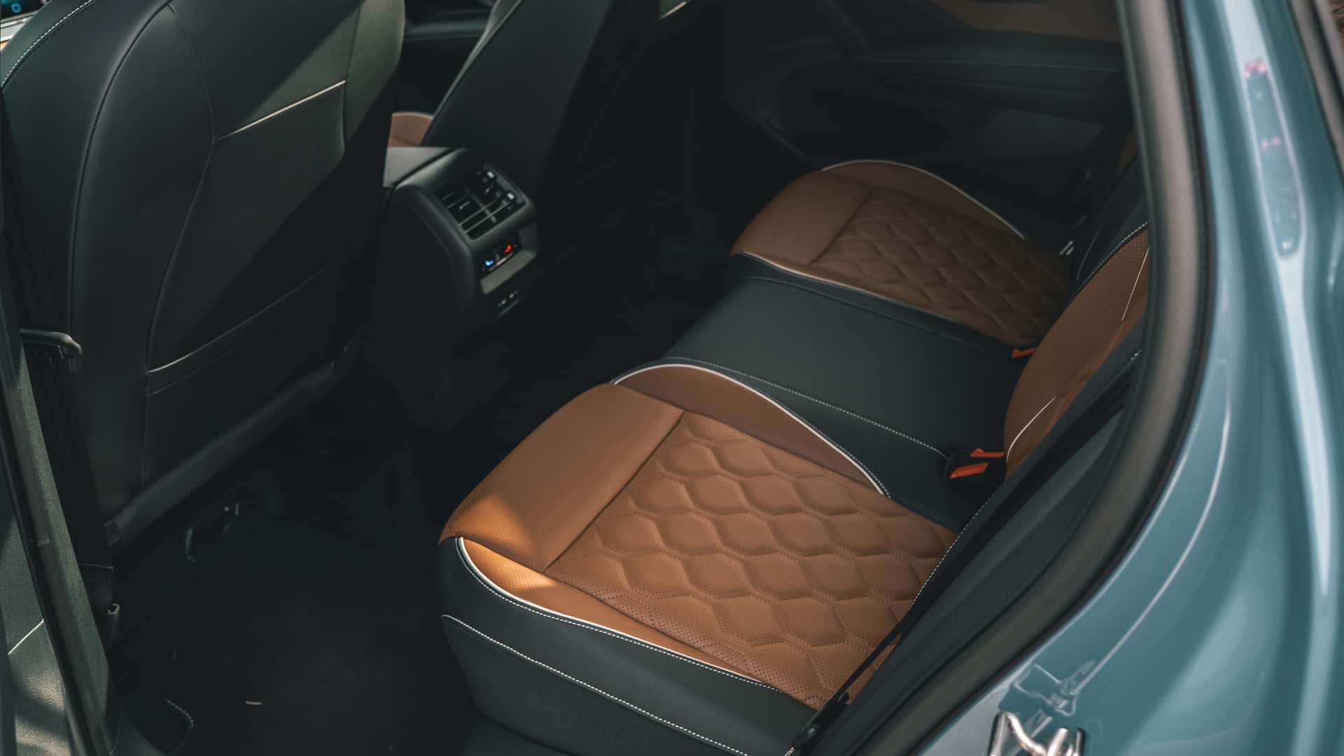 Inside, the cabin finally delivers the premium feel buyers expect. On higher trims like the SEL R-Line, the Tiguan offers perforated leather seats, ambient lighting, and a massive 15-inch touchscreen. Materials across the cabin feel more upscale than before, with tasteful use of wood and soft plastics.